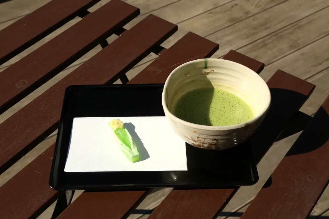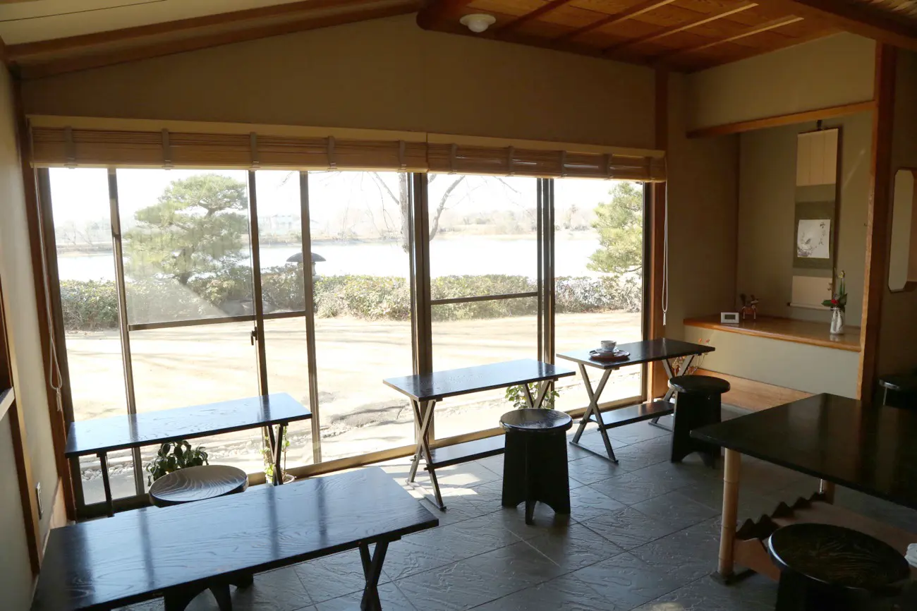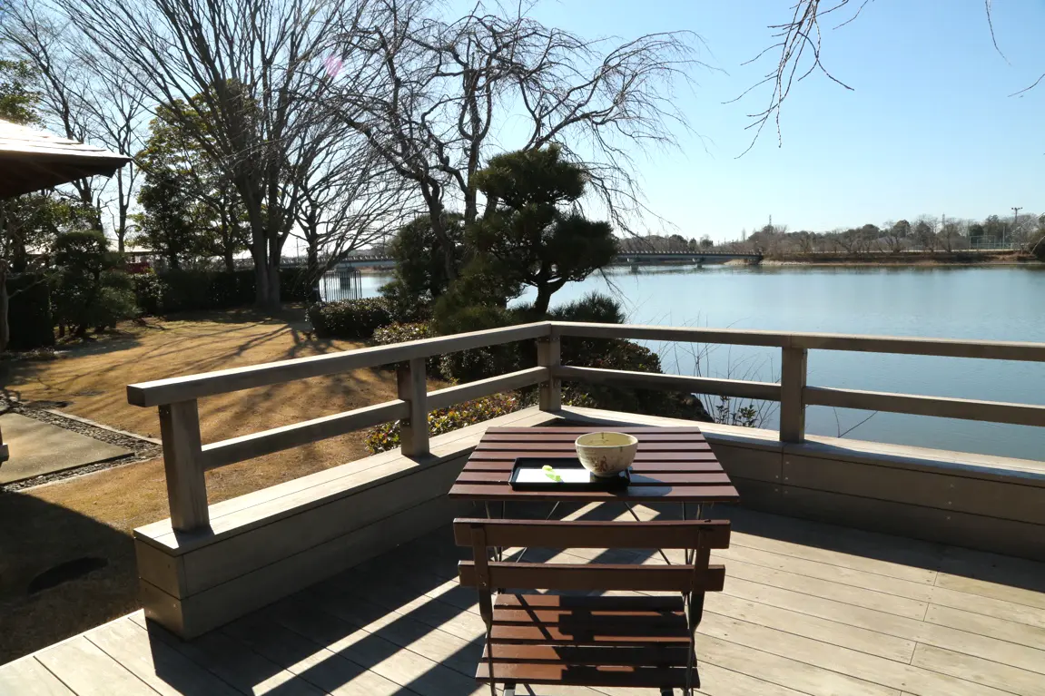 立礼席では気軽にお茶を楽しむことができ、抹茶やコーヒーを味わいながら砂沼の景観と湖畔の桜をゆっくりと堪能できます。
